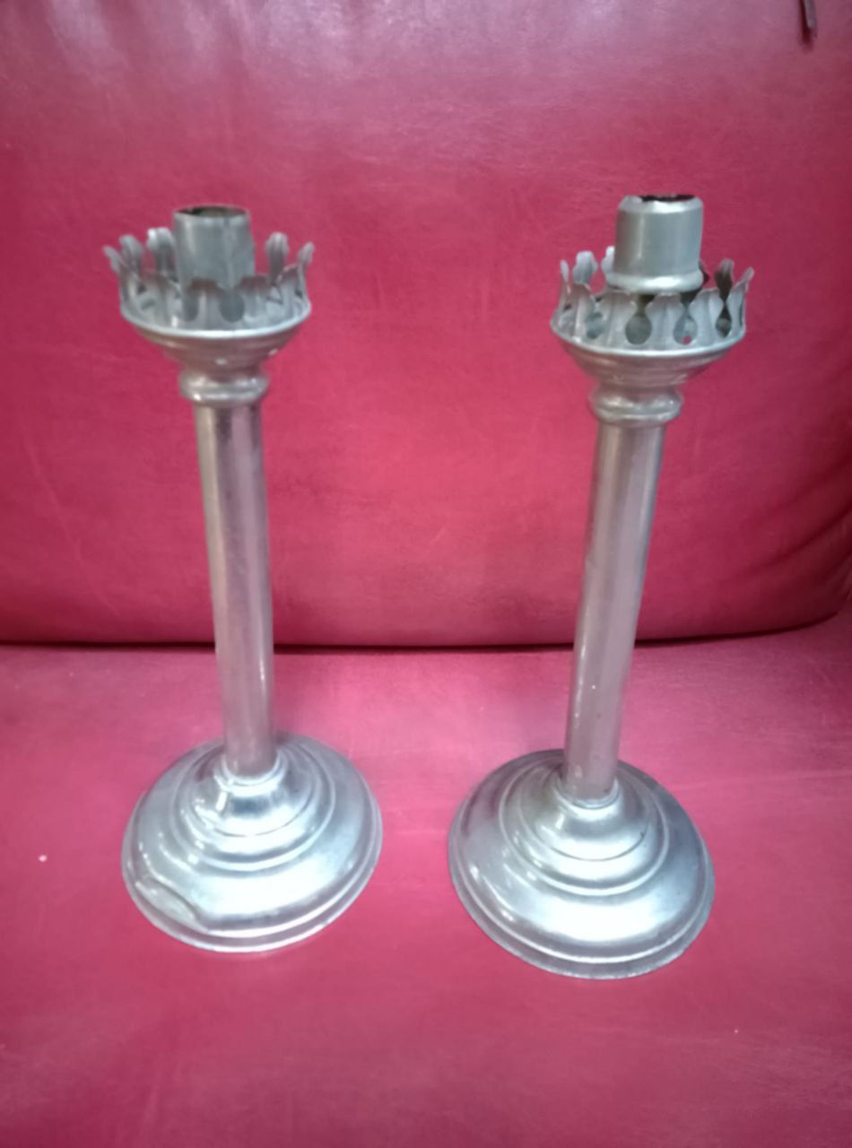 Coppia di Candelabri Porta Candele a Fiamma Singola in Silver