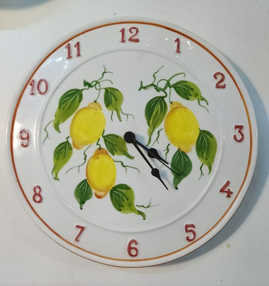 Orologio da Parete Rotondo in Ceramica DEL MELO Decoro Limoni