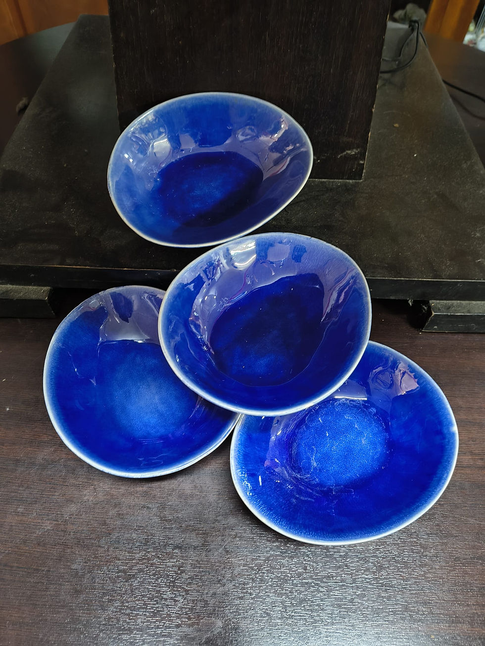 Servizio 4 Ciotole Scodelle o Piatti Fondi Ovali in Ceramica Blu